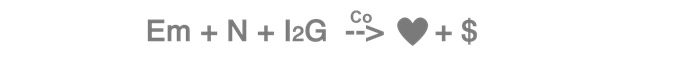 When organizations practice empathy (Em), nurturing (N), inclusivity and intuition (I2) as well as gratitude (G) and catalyze it with collaboration (Co), the resulting innovation emotionally connects to consumers (the heart), bringing revenues ($) to the business.