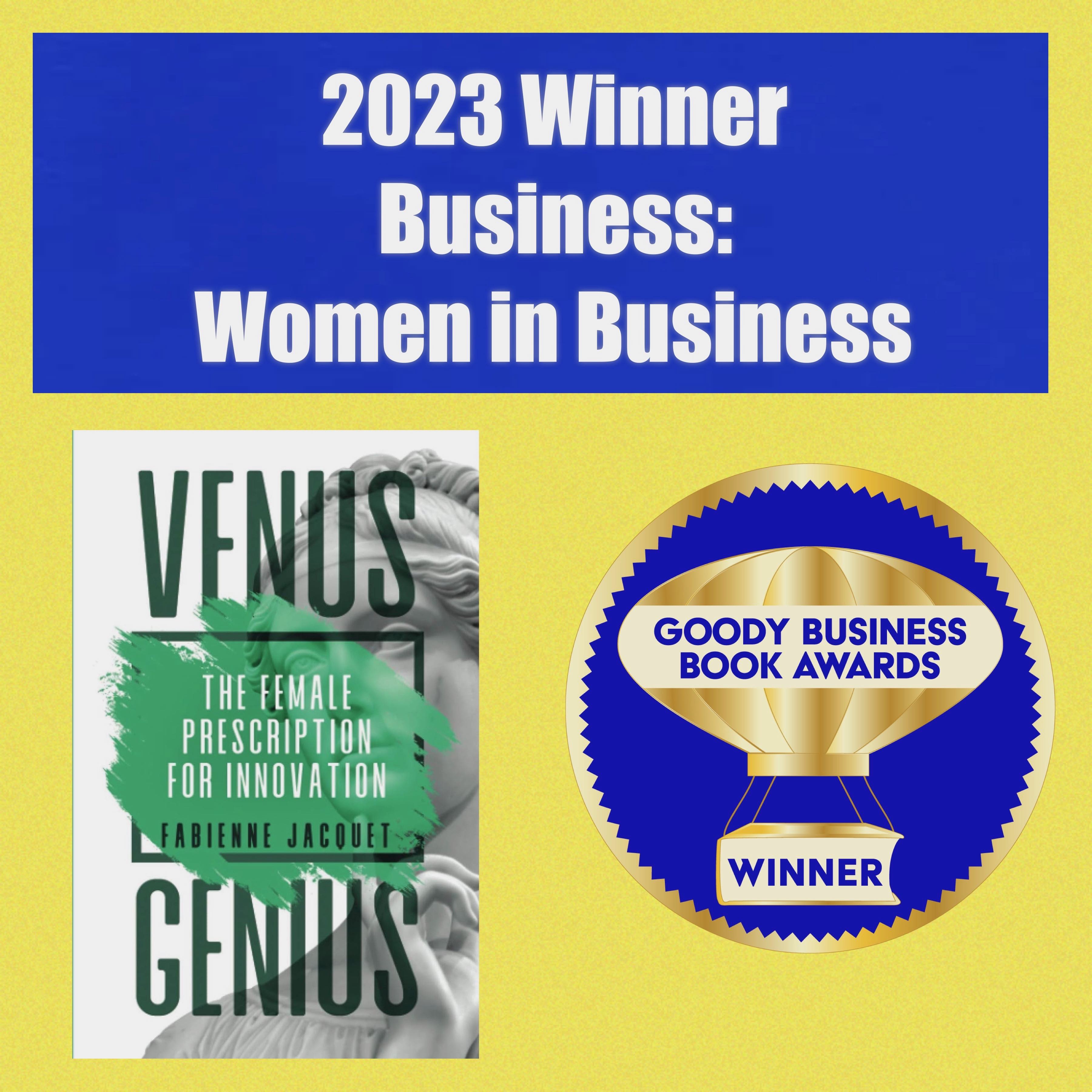 I am overjoyed to announce Venus Genius has won the prestigious Goody Business Book Awards, which honor 100% Social Impact books and authors making a difference with words. It earned first prize in the ‘Women in Business’ category and was a finalist for the ‘Thought Leader’ Award.