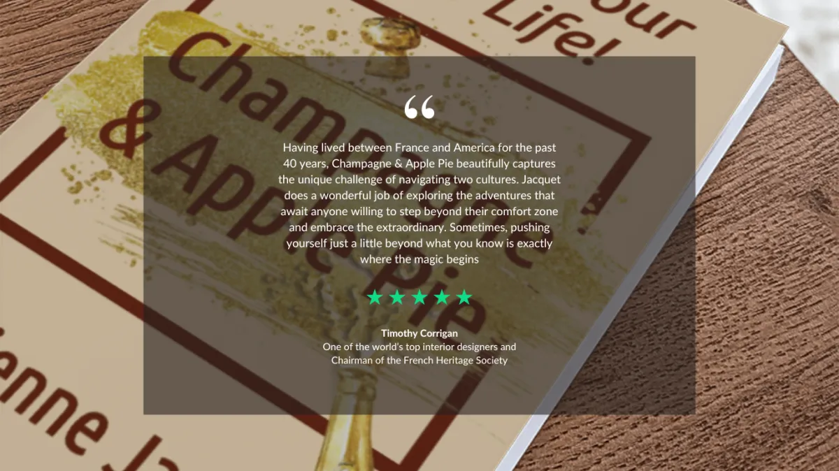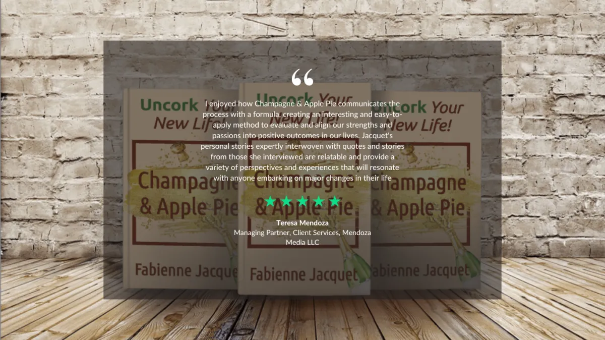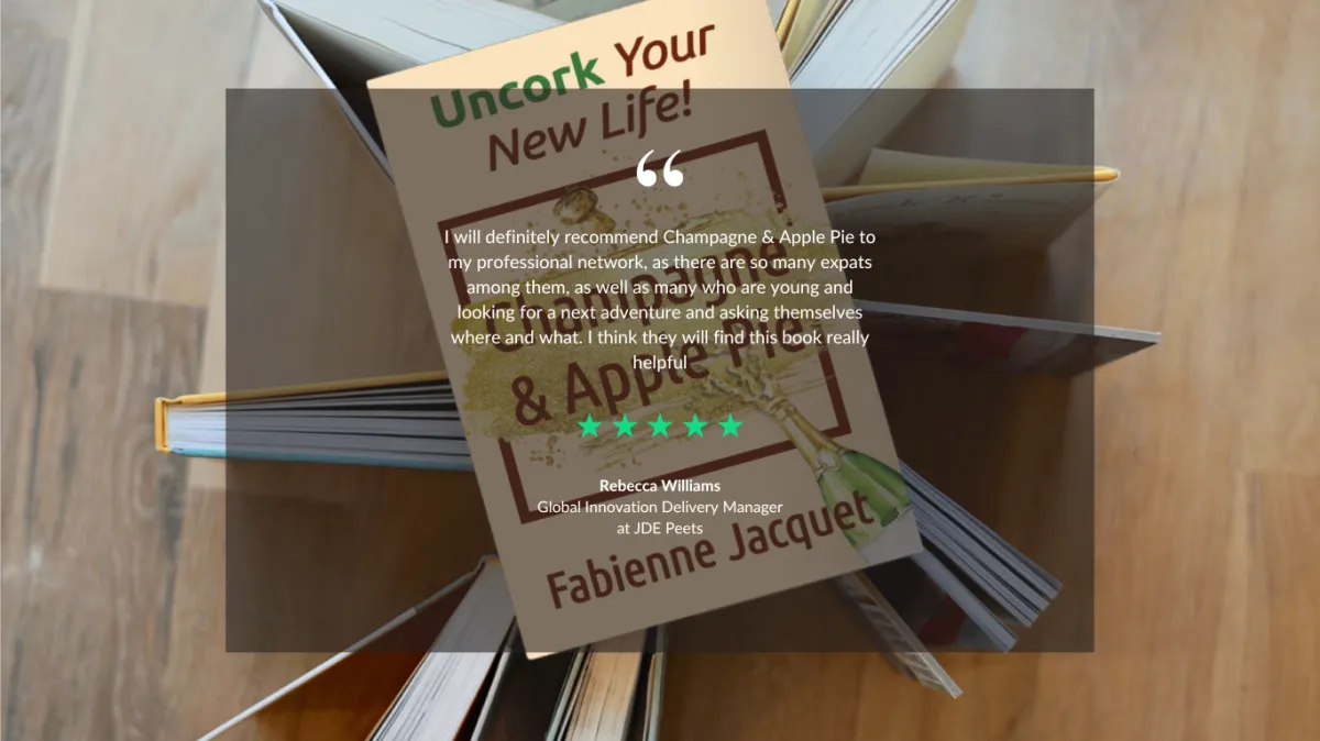 The book Champagne & Apple Pie: Uncork Your New Life! is about how my expatriation from France to the US in the early 90s brought me to the conclusion that moving abroad is not running from ourselves to start from scratch, but on the contrary a catalyst to discovering who we truly are. Based on my chemical background and innovation experience, I propose a formula to reinvent your life based on your strengths and passions, with tools and guidance for practice.